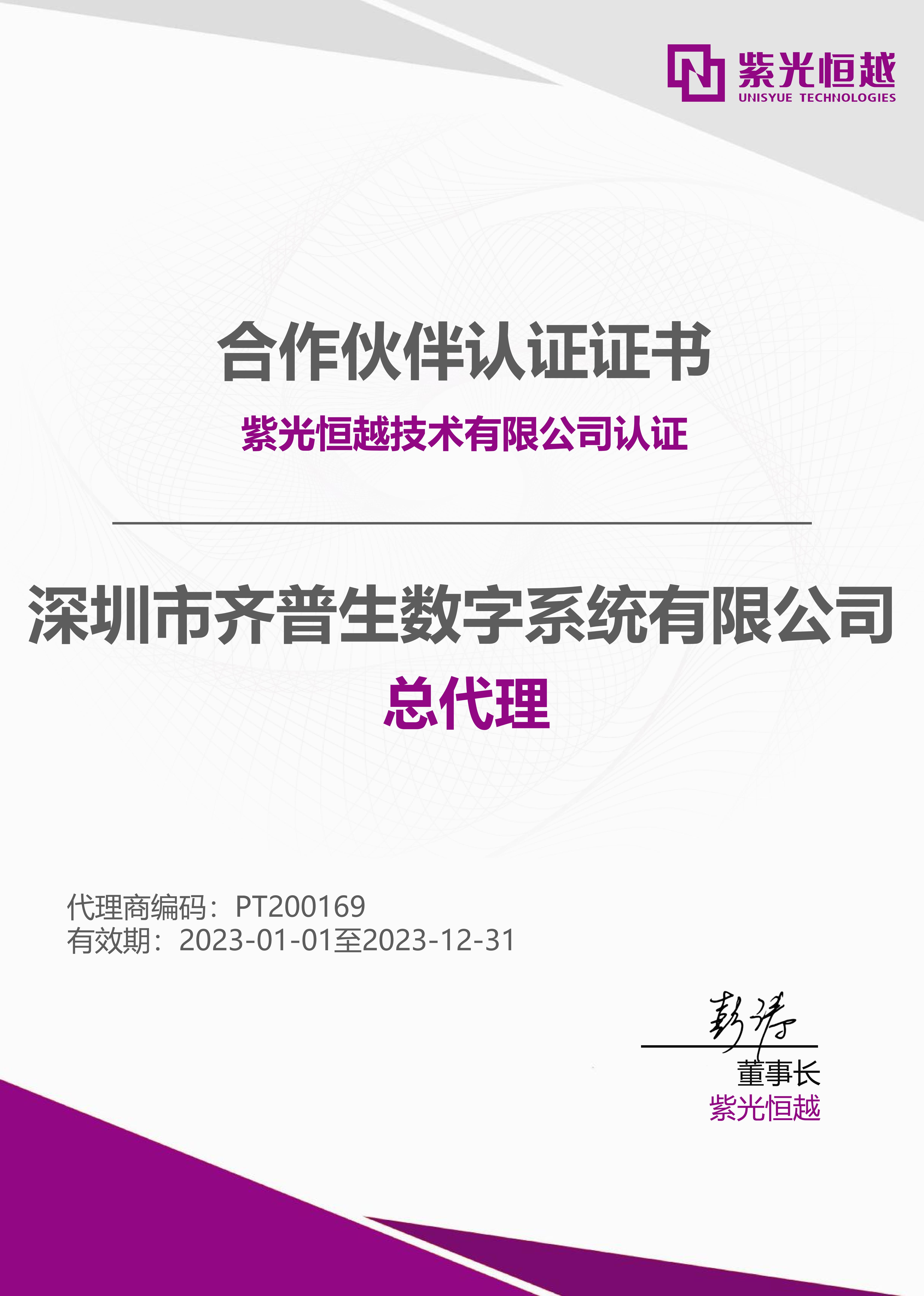 • 紫光云總代理證書(shū)
