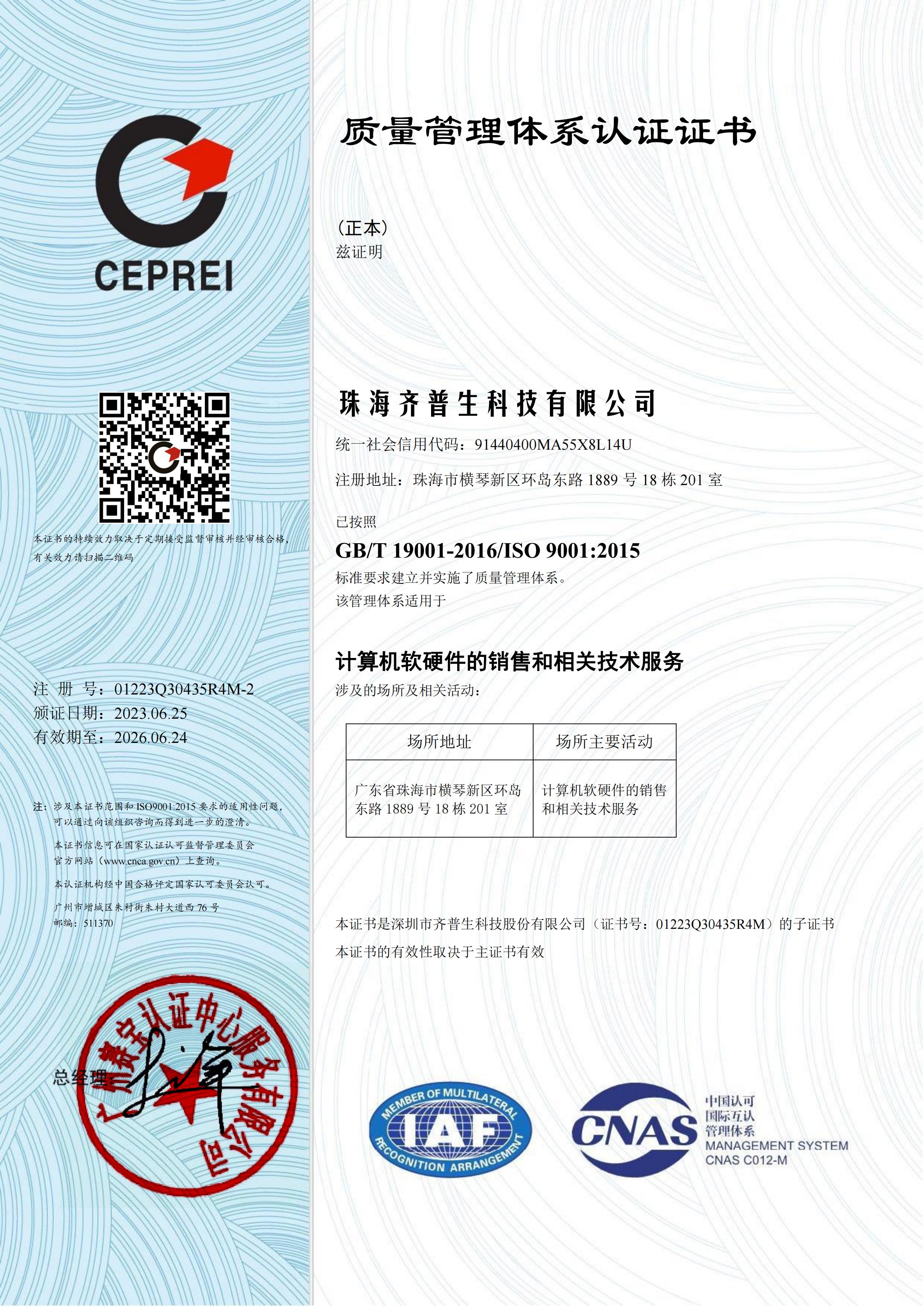 • ISO9001證書(shū)(珠海)