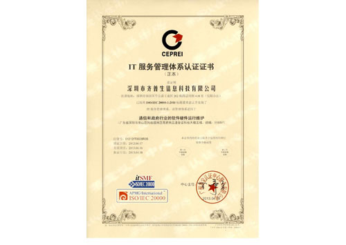 • IT服務(wù)管理體系認(rèn)證證書(shū)
