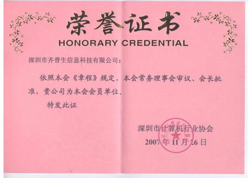 • 計(jì)算機(jī)行業(yè)協(xié)會(huì)會(huì)員榮譽(yù)(證書(shū))
