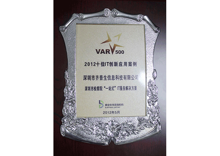 • 2012年十佳IT創新應用案例(深圳市人民檢察院“一站式”IT服務解決方案)